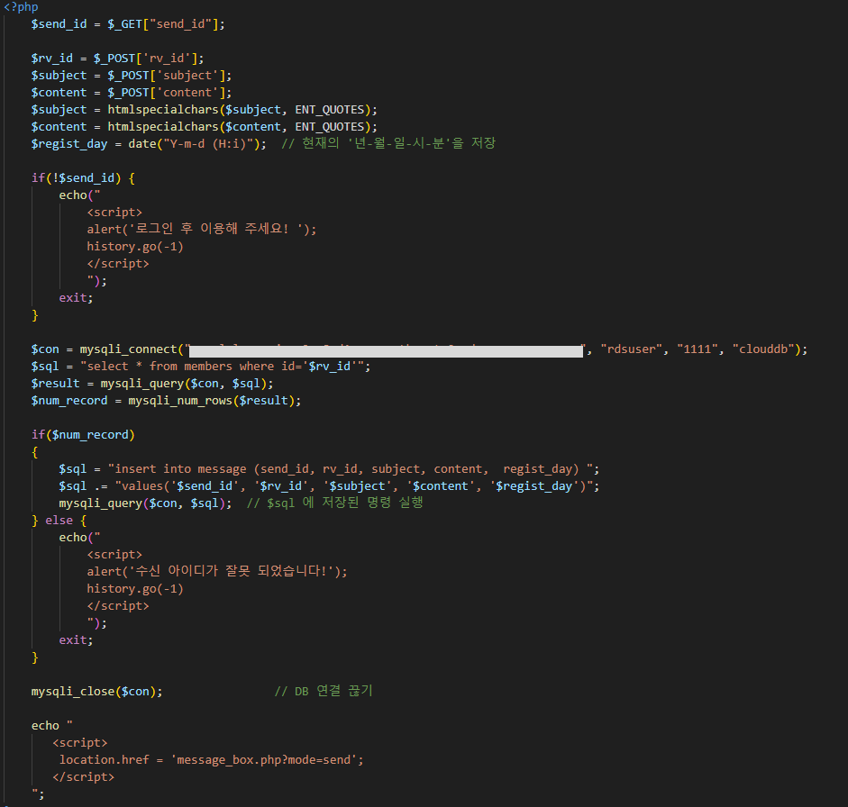 기입한 정보들을 message_insert.php로 보내집니다