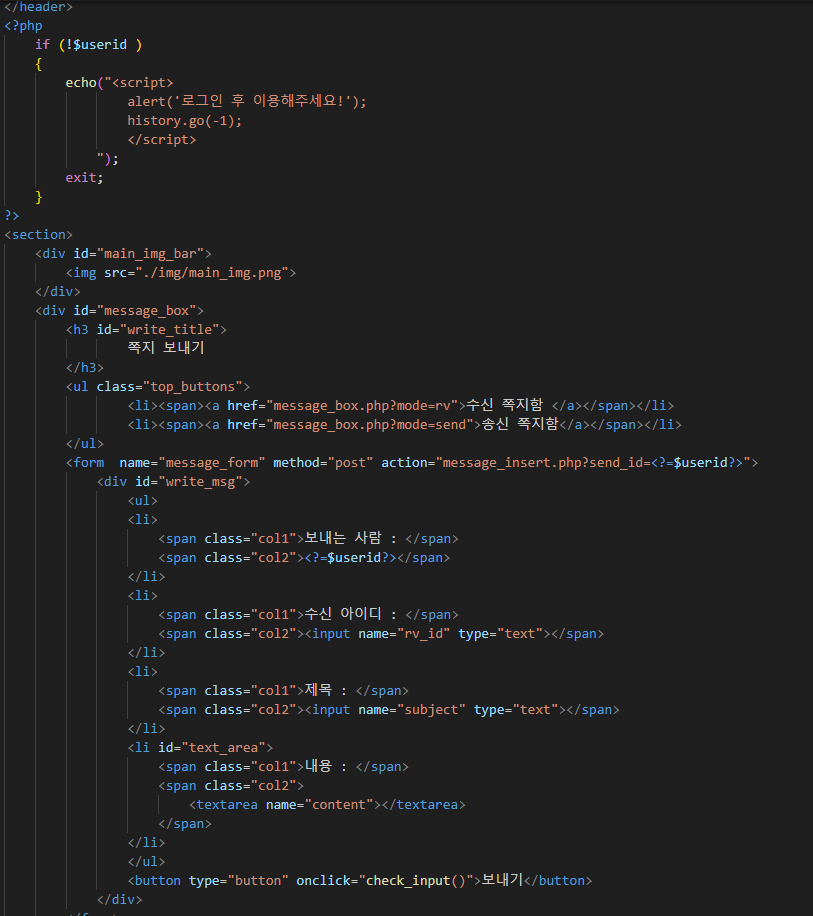 header.php의 div#menu_bar에 회원가입과 쪽지보내기를 추가하고