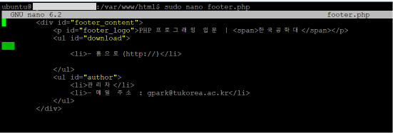 sudo nano footer.php 를 입력합니다