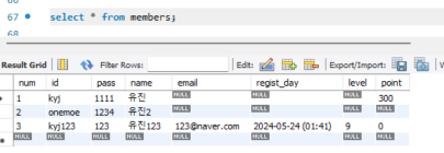 기입한 정보를 members 테이블에 insert합니다