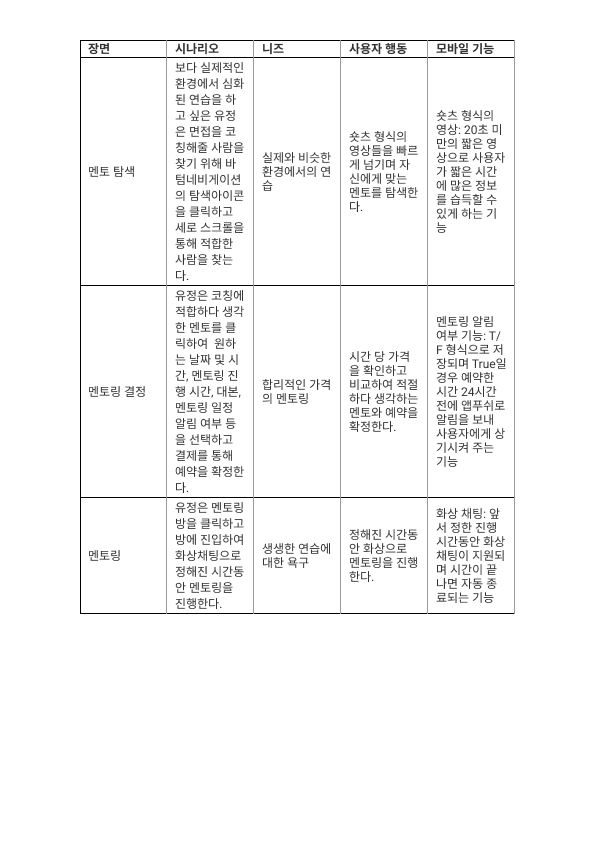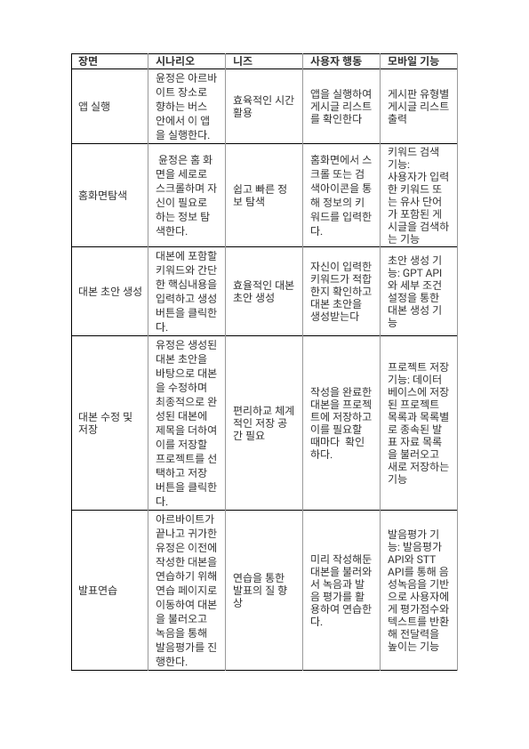 작성한 사용자 시나리오는 아래와 같다.