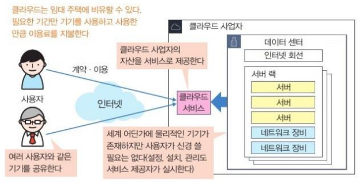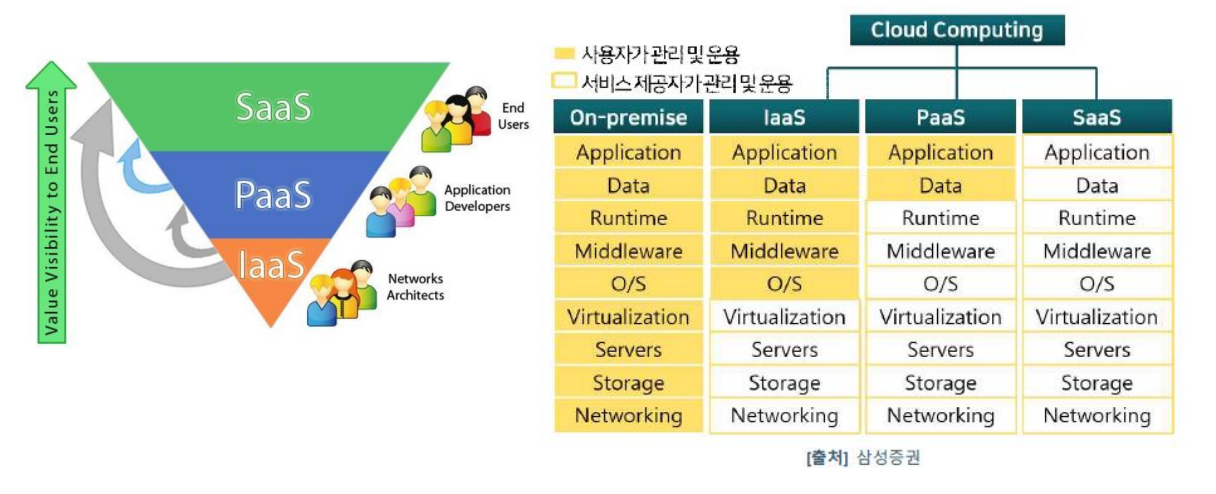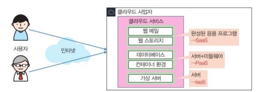 - > 물리적인 기기나 네트워크는 서비스 제공자가 준비해 놨으므로 사용자는 바로 정보 시스템을 구축할 수 있다.