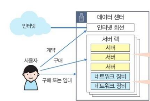 - > 클라우드 서비스 등장 이전에는 정보 시스템을 구축하기 위해 자체적으로 관련 기기를 준비하고 운영시설(데이터 센터)를 갖추어야 했다