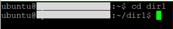 - cd 명령어를 통해 dir1으로 이동하였고 ~/dir1이 뜸으로 보아 dir1으로 잘 이동하였음을 확인했다